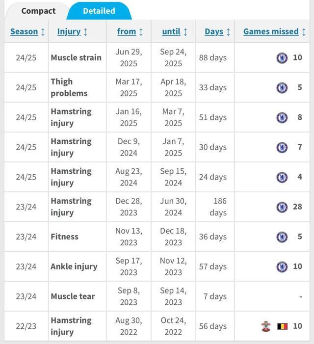 英超头号玻璃人!加盟切尔西2年伤停9次 从未踢满过全场